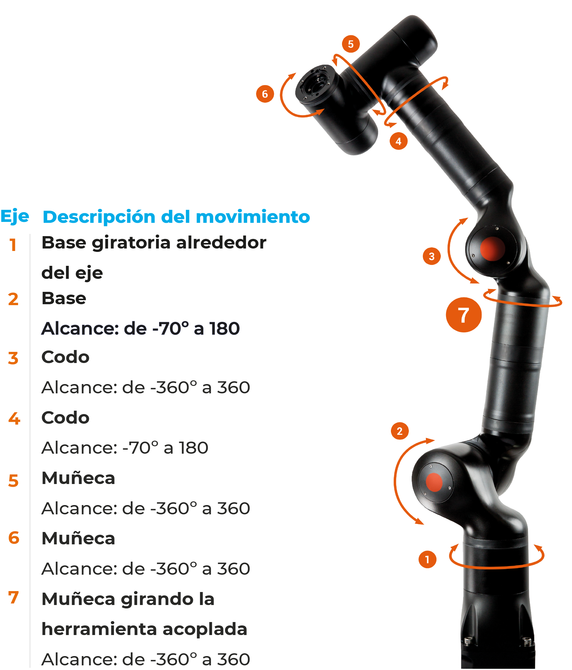 Nuestros cobots tienen una combinación perfecta y única de 7 ejes ofreciendo mayor rango de movimiento, capacidad de carga útil y precisión mejorada donde puedes acceder fácilmente a áreas de difícil acceso, manipulando objetos más pesados y a su vez realizar tareas delicads con mayor precisión, por lo que convierte en una gran solución ideal para una amplia gama de tareas industriales.